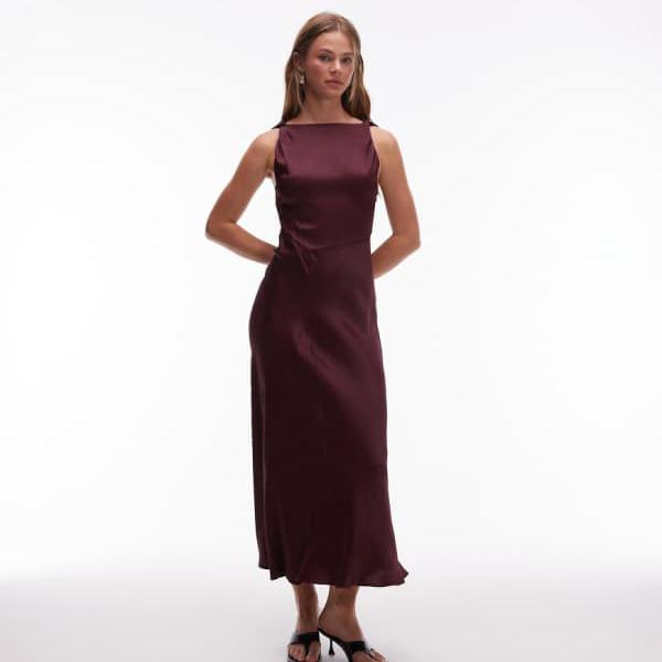 アンドアザーストーリーズ & Other Stories & Other Storiesのサテンクレープミディドレス(ドレープネック、バーガンディワイン) ワンピース レディース 女性 インポートブランド 小さいサイズから大きいサイズまで