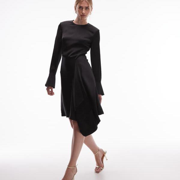 アンドアザーストーリーズ & Other Stories & Other Storiesのアシンメトリーヘムのサテンミニドレス(ブラック) ワンピース レディース 女性 インポートブランド 小さいサイズから大きいサイズまで