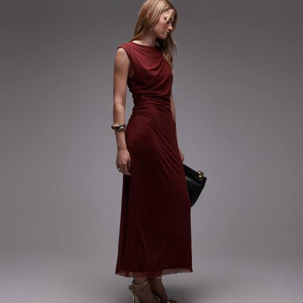 アンドアザーストーリーズ & Other Stories & Other Stories ドレープメッシュミディドレス(ワイン) ワンピース レディース 女性 インポートブランド 小さいサイズから大きいサイズまで