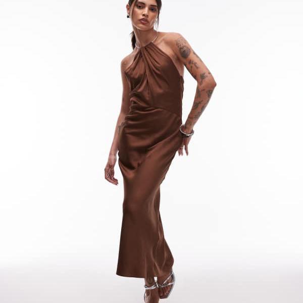 アンドアザーストーリーズ & Other Stories メタルホルターネックのディテールとローバックが特徴のブラウンのマキシドレス。 ワンピース レディース 女性 インポートブランド 小さいサイズから大きいサイズまで