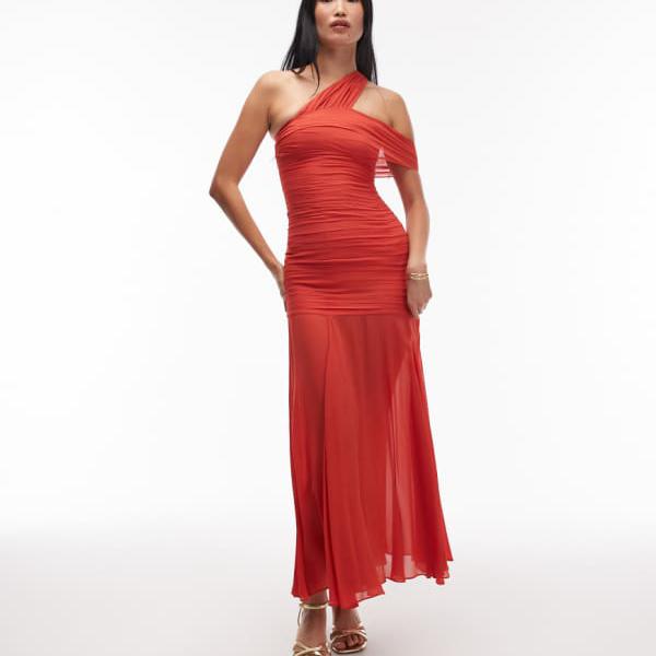 アンドアザーストーリーズ & Other Stories & Other Storiesのミックスファブリックのマキシドレス(アシンメトリーなオフショルダーとシースルーヘム、ダークレッド) ワンピース レディース 女性 インポートブランド 小さいサイズから大きいサイズまで