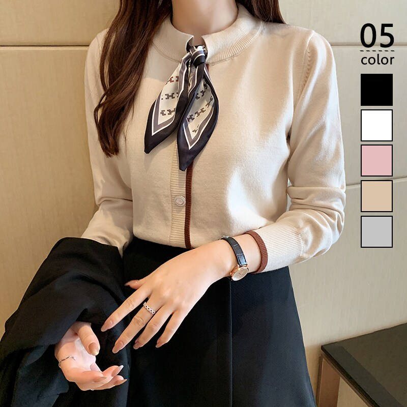 カットソー セーター ニット シャツ ブラウス スカーフネクタイ シャツブラウス レディース トップス コート 長袖 プルオーバー ラウンドネック 春 秋 新作 ゆったり エレガント カジュアル 体型カバー 通勤 OL オフィス 着痩せ おしゃれ 着回し 大人 切り替え 送料無料