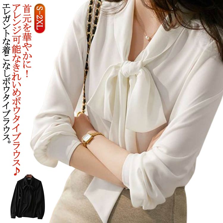 ブラウス レディース ボウタイ スカーフ タイ スーツ インナー トップス 長袖 透けにくい 大きいサイズ 小さいサイズ 通勤服 大人 会社 オフィス ビジネス 通勤 入学式 卒園式 入園 七五三 ママ S-2XL