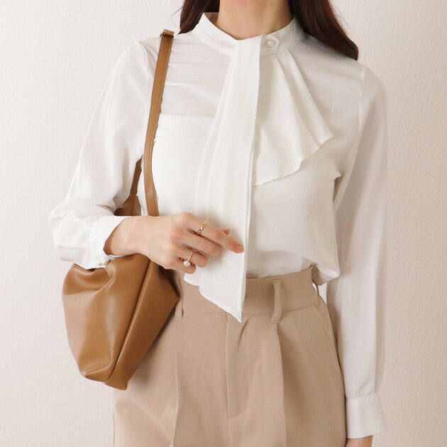 ⇒ 買い物ガイドはこちら■商品説明 とろみ感のある生地で、上品な佇まいに仕上げた長袖ブラウス。 さらりと1枚ではもちろん、ジャケットやカーディガンのインナーとしてなど、幅広いアレンジが楽しめる1枚です。 ボウタイ風のアクセントが顔まわりを華やかに演出してくれるので、オフィスやセレモニーなどのオンコーデにもお使いいただけます。 無地ベースのシンプルなデザインでコーディネートにも取り入れやすく、合わせるアイテムを選ばないのもうれしいところ。 ワードロープの中に1枚あると役に立つ、マルチユースできる優秀なトップスです。 ■サイズ 【S】着丈:57cm / 身幅:44cm / 肩幅:34cm / 袖丈:53cm / 袖口幅:9cm / アーム幅:16cm / 【F】着丈:60cm / 身幅:48cm / 肩幅:36cm / 袖丈:54cm / 袖口幅:10cm / アーム幅:17cm / ■素材 表地:ポリエステル100% / 裏地:無 ■モデル情報 身長165cm / 体重48kg / バスト75 / ウエスト58 / ヒップ88 / 骨格ウェーブ ■原産国 MADE IN CHINA ■注意点 ・色合いはモニター環境により若干の誤差が出る場合がございます。 ・サイズは平置きサイズとなりますので、測り方によっては誤差が生じる場合がございます。 ・入荷・生産時期により、色、サイズ、素材などが多少異なる場合がございます。 ・本製品は生産過程におきまして、生地を織る際の糸の継ぎ目や多少のほつれが生じることがあります。 ・お手頃な価格で提供しているため、簡易包装となっており、保管・梱包時にシワが生じる場合がございます。 ・靴商品は商品箱が破損している場合がございます。 ・上記の点についてあらかじめご了承いただきますようお願い申し上げます。