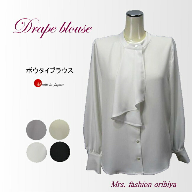 ボウタイ付き 長袖 とろみ ベーシック ブラウス 女性 レディース トップス ブラウス 春 夏 秋 冬 オールシーズン 上品 シンプル ミニマル ネクタイ リボン スカーフ セレモニー オフィス 冠婚葬祭 インナー ジャケット きれいめ 大人