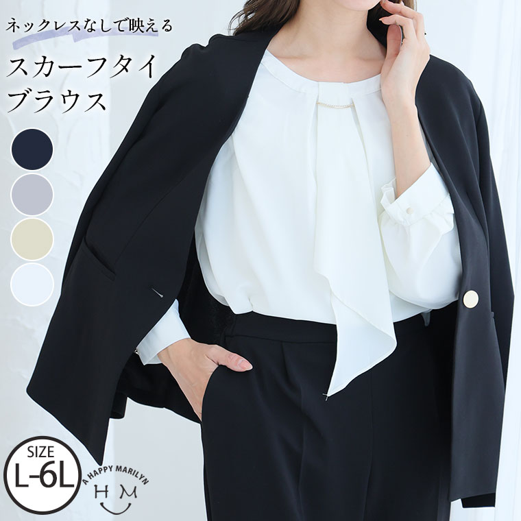 【4h限定全品20%オフクーポン】 大きいサイズ レディース ブラウス | スカーフタイ ブラウス _ シャツ トップス セレモニースーツ LL 3L 4L 5L 6L 長袖 春 春物 春服 ぽっちゃり ゆったり プラスサイズ イージーケア UVカット ウォッシャブル 接触冷感 卒園式 [5361055]
