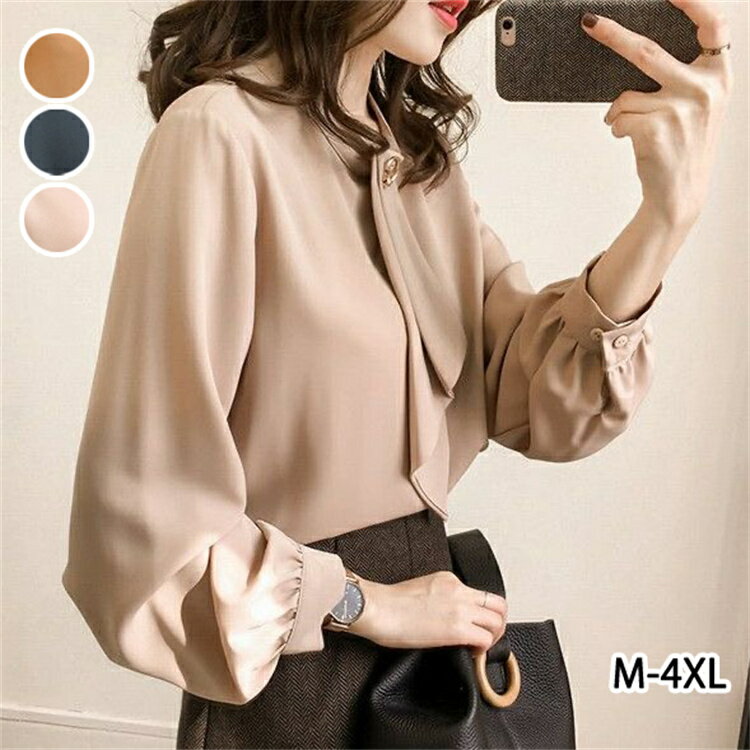 トップス ブラウス シャツ ボウタイ スカーフ レディース エレガント きれいめ カジュアル おしゃれ 長袖 大人 可愛い 体型カバー 上品 リボン フェミニン オフィス 大きいサイズ ベージュ ホワイト 白 春 秋 冬 20代 30代 40代 50代