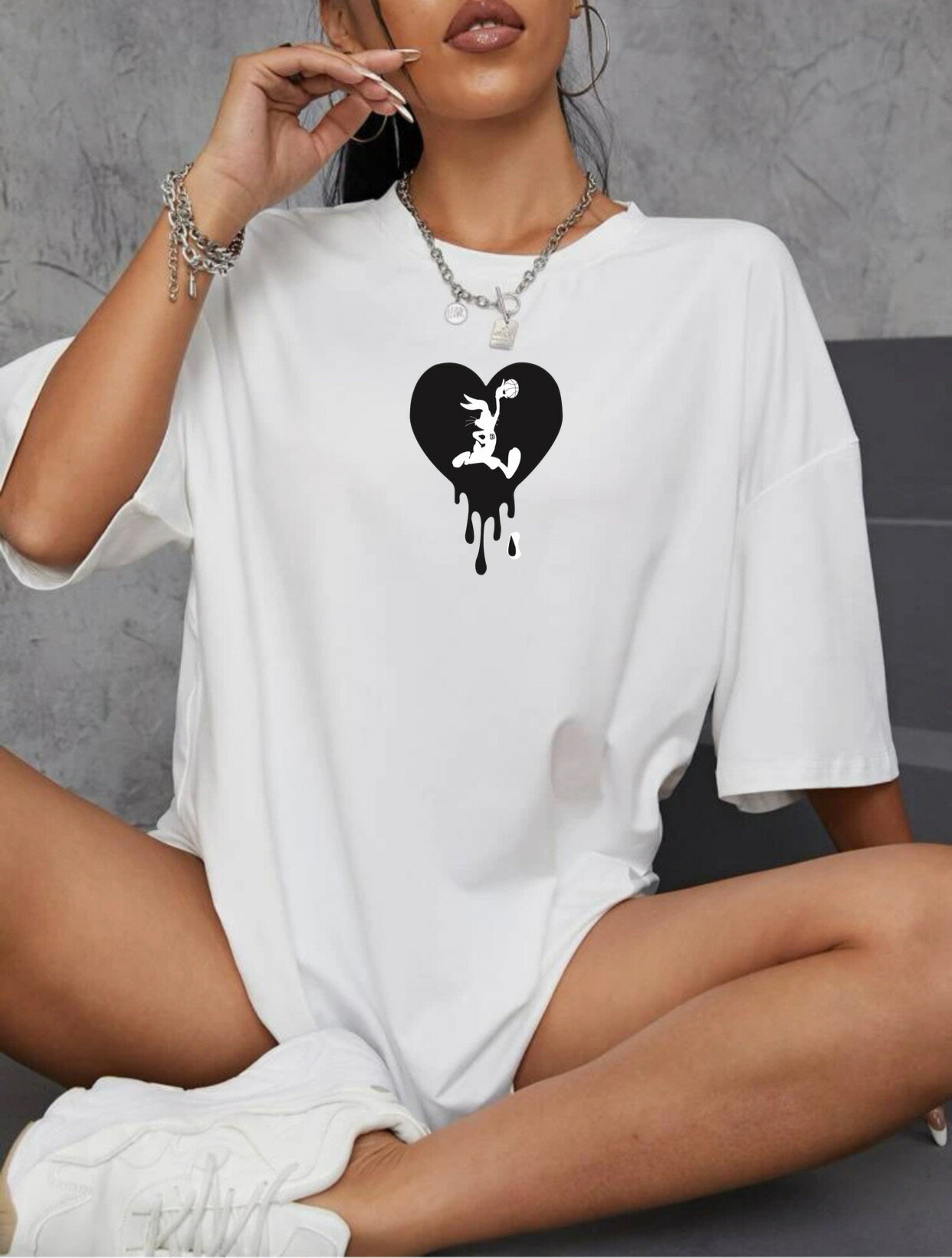 Tシャツ tシャツ 半袖 レディース お洒落 おしゃれ スポーツウェア ダンス衣装 夏 春 運動着 白 黒 送料無料 シンプル ロゴ ゆったり 体型カバー ダイエット着 セクシー 涼しい カジュアル スリム 韓国ファッション きれいめ 美ライン 細見え 着痩せ ハートマーク