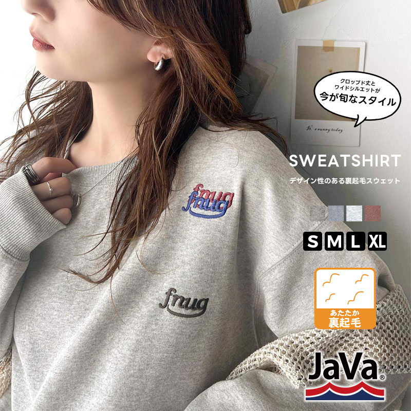 \11/27まで まとめ買いがお得!! 3点以上で10%OFF/ 《javaジャバ コラボ》トップス スウェット レディース トレーナー プルオーバー 多刺繍 裏起毛 スウェット メンズ ユニセックス 男女兼用 クロップド丈 長袖 大きいサイズ 秋 冬 jv1050234