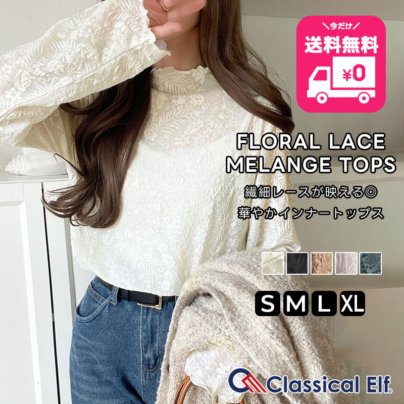 【今だけ 送料無料 3,999円 ⇒ 1,599円 】 【 クラシカルエルフ classical elf 】 トップス Tシャツ レディース 透け感 プチ ハイ ネック 花柄 レース メロウ 長袖 華やか インナー レイヤードコーデ 大きいサイズ 秋 冬 2025aw ce1010487 ブラックフライデー 2025