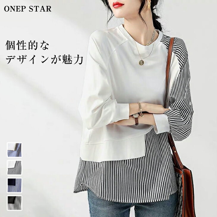【新作50%OFF!クーポンで】長袖トップス 体型カバー カジュアル クルーネック 切り替え おしゃれ カットソー ルームウエア 普段着 大人 服 服 通勤通学 レディースファッション 40代 50代 60代 ワンピスター