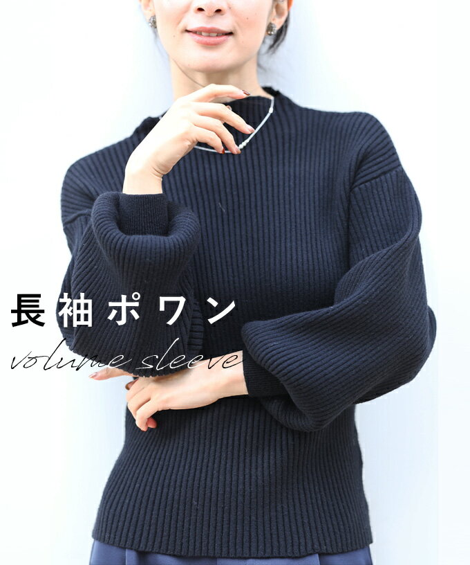 【新作50%OFF!クーポンで】プリーツスリーブニットトップス レディース ニット トップス 長袖 ハイネック プリーツスリーブ リブ切替 大人カジュアル 秋 冬 20代 30代 40代 50代 ワンピスター