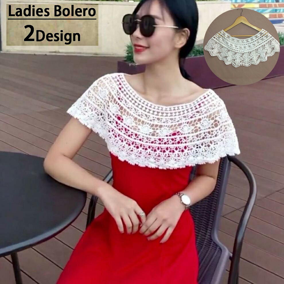 送料無料 ボレロ ショール トップス レディース 女性用 レース 肩掛け プルオーバー 薄手 ショート丈 ケープ 透かし編み ドレス用 ブライダル用
