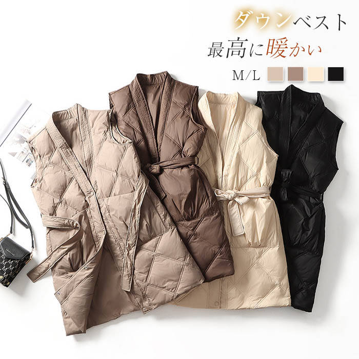 ダウンベスト 中綿ベスト Vネック ノースリーブ レディース ハイウエスト ベスト キルティングベスト ダウンジャケット ベルト付き 軽い 暖かい 大きいサイズ ポケット付き きれいめ ゆったり 防寒 ファッション 秋冬 送料無料