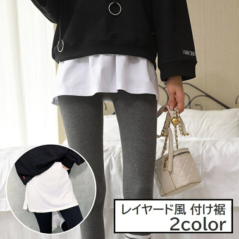 送料無料 付け裾 つけ裾 レディース 女性 婦人 フェイクレイヤード 重ね着風 レイヤード風 スリット ウエストゴム 体型カバー 無地 ホワイト 白 ブラック 黒 シンプル カジュアル おしゃれ かわいい ファッション小物