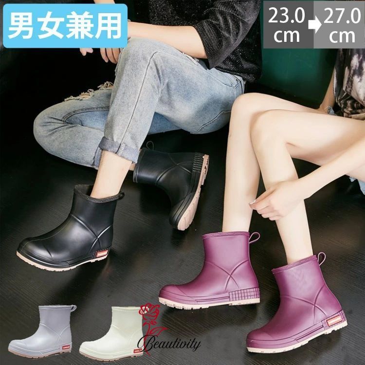 レインブーツ メンズ レディース 男女兼用 レインシューズ 雨・晴れ兼用 雨靴 かわいい 梅雨 台風 大雨 ショートブーツ 痛くない 歩きやすい 履きやすい ベージュ ブラック グレー パープル ブーティ レインシューズ 23cm-27cm
