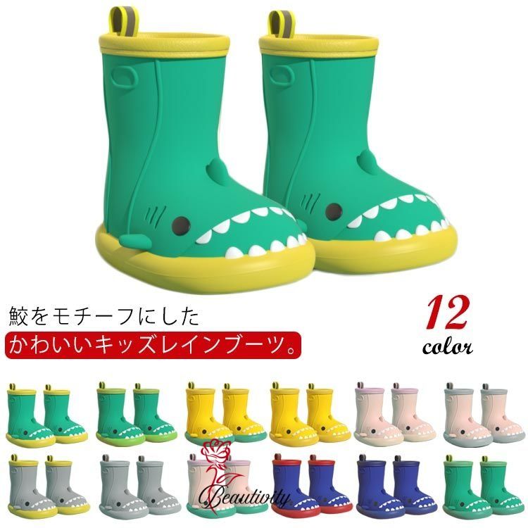 レインブーツ キッズ 長靴 鮫 サメ レインシューズ 子供 防水 雨靴 女の子 男の子 完全防水 シューズ ミドル丈 ショートブーツ 雨 雪遊び 雨の日 通学 通園 お出かけ 子ども 梅雨 雨具 靴 かわいい 歩きやすい 滑り止め カラフル 14cm 15cm 16cm 17cm 18cm 19cm 20cm 21cm