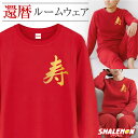還暦祝い (上下セット) ( 左胸デザイン 金ことぶき 還暦 トレーナー&ロングパンツ ) 60歳 スウェット 男女兼用 メンズ レディース 男性 女性 長袖 ルームウエア パジャマ 母 赤い 実用性 ちゃんちゃんこ の代わり 誕生日 プレゼント しゃれもん サプライズ