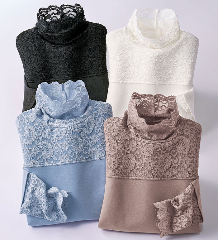 \まとめ買い最大20%OFFクーポン/カットソー レディース プルオーバー レース使い吸湿発熱プルオーバー 2026春 belluna ベルーナ M-5L Tシャツ