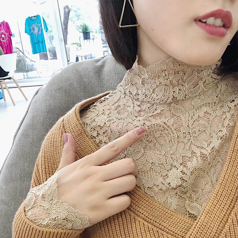 【P2倍&クーポン有】トップス インナー レディース カットソー プルオーバー 春 秋 冬 淡色コーデ 裾レース 長袖 萌袖 ベルスリーブ タートルネック ハイネック スリム タイト レイヤード 肌みせ 総レース 刺繍 ファスナー 透け感 カラバリあり ベージュ ブラウン