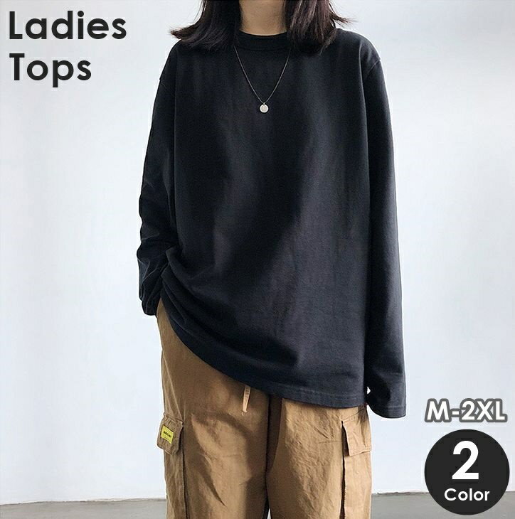 送料無料 ロングTシャツ 長袖 ロンT レディース 女性 婦人 丸首 クルーネック トップス ゆったり 大きめ 無地 単色 シンプル 大きいサイズ カジュアル お洒落 重ね着