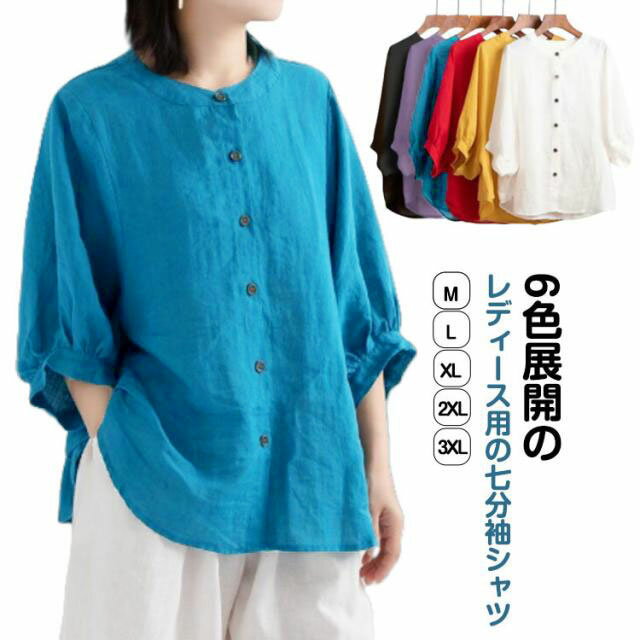 6色展開のレディース用の七分袖シャツゆったりとしたデザインで、ストレッチフリーに着用できる。トレンドのワイドスリーブがニュアンス感を醸し出してくれるシャツ。シンプルなデザインで年齢を問わず、何も似合っています。 サイズ M L XL 2XL 3XL サイズについての説明 表記の通り 素材 綿麻 色 ホワイト レッド ブラック イエロー パープル ブルー 備考 ●サイズ詳細等の測り方はスタッフ間で統一、徹底はしておりますが、実寸は商品によって若干の誤差(1cm〜3cm )がある場合がございますので、予めご了承ください。 ●商品の色は、撮影時の光や、お客様のモニターの色具合などにより、実際の商品と異なる場合がございます。あらかじめ、ご了承ください。 ●製品によっては、生地の特性上、洗濯時に縮む場合がございますので洗濯時はご注意下さいませ。 ▼色味の強い製品によっては他の衣類などに色移りする場合もございますので、速やかに(脱水、乾燥等)するようにお願いいたします。 ▼生地によっては摩擦や汗、雨などで濡れた時は、他の製品に移染する恐れがございますので、着用の際はご注意下さい。 ▼生地の特性上、やや匂いが強く感じられるものもございます。数日のご使用や陰干しなどで気になる匂いはほとんど感じられなくなります。