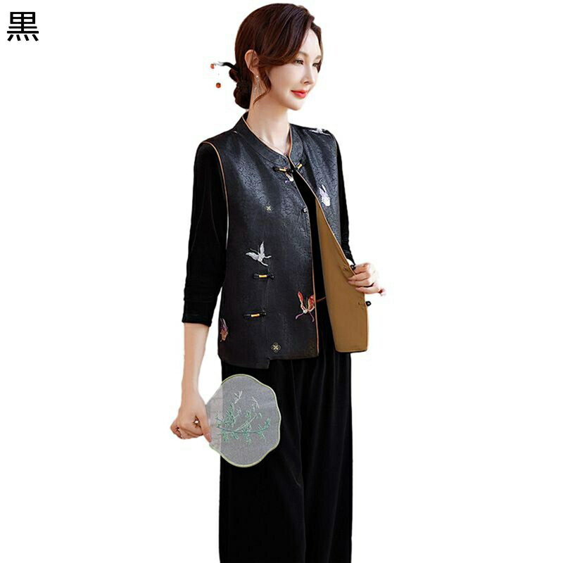 中華風ベスト 唐装 カジュアルベスト 高齢者 レディース 鳳凰柄 刺繍 漢服 キレイめ ノンスリップ 前開き チャイナボタン 伝統服 春 秋 冬 シニア女性 婦人服 贈り物 自宅 通勤通学 日常着