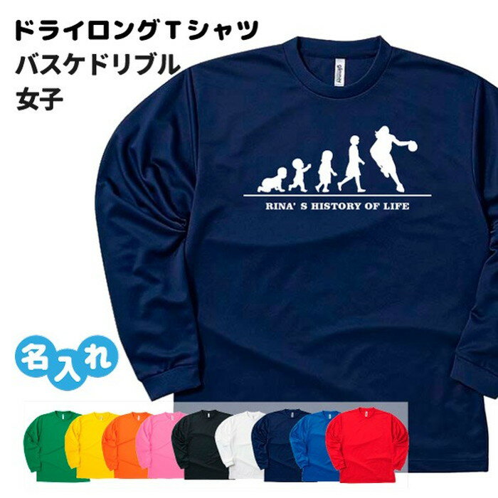 バスケ 長袖 Tシャツ ドライ オリジナル 名入れ無料 レディース 女 チーム 【HOL 女子 ドリブル】 Sサイズ Mサイズ Lサイズ LLサイズ 3L