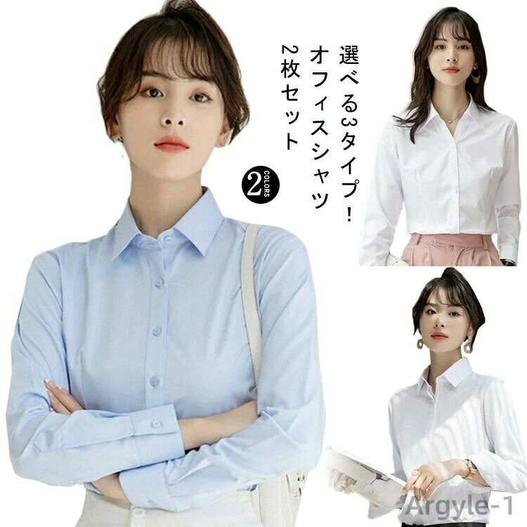【送料無料】2枚セット シャツ レディース ワイシャツ 白 ブラウス オフィス シャツ スーツ インナー フォーマル スーツ 選べる3タイプ