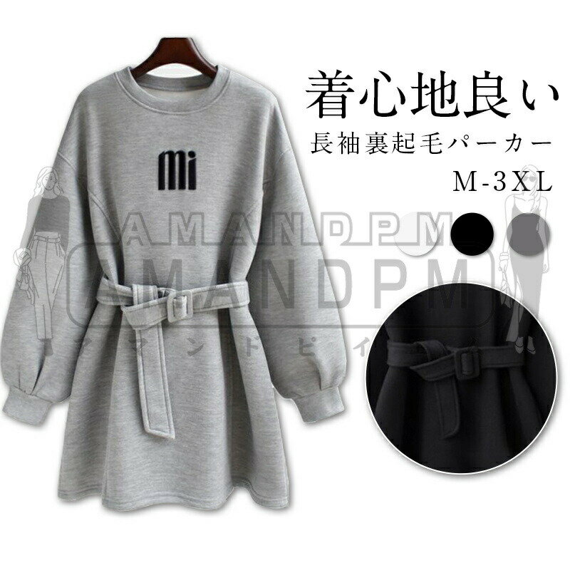 「楽天スーパーSALE」 2TYPE パーカー レディース シャツ トップス 秋冬の新作 裏起毛 切り替えシャツ ベルト付き 春 スプリングシャツ ラウンドネック 体型カバー 着?せ オシャレ カジュアル シンプル 着回し 定番 通勤 通学 旅行 スポーツ 20代 30代 40代 50代