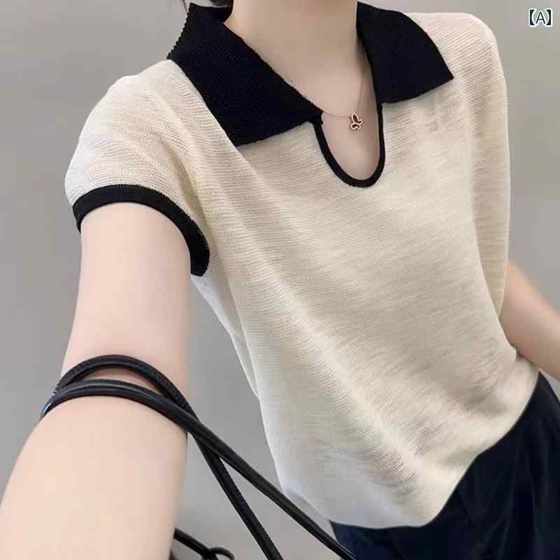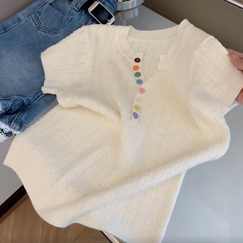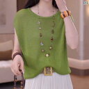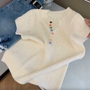サマーニット レディース ファッションの 無地 ラウンドネック 背中 開き 半袖 ニット セーター 女性用 夏 カジュアル 万能な トップス 薄型 スタイル