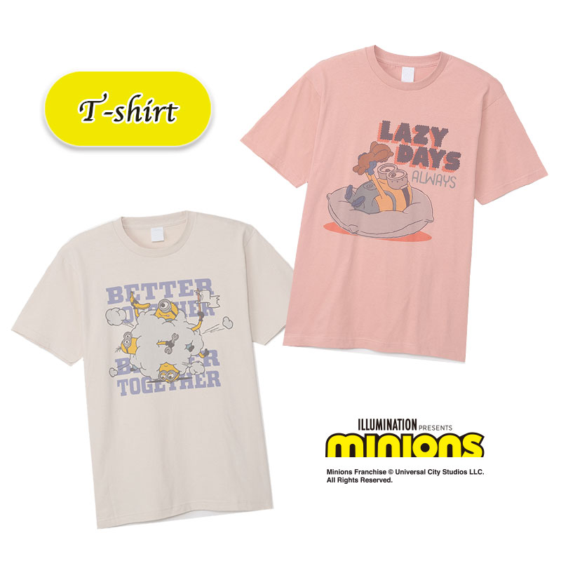 [公式] ミニオンズ minions なかよし トゥゲザー Tシャツ Lサイズ XLサイズ MN1589_MN1592 スモール・プラネット おしゃれ 可愛い ピンク ベージュ パステルカラー くすみカラー ボブ LAZY DAYSBETTER