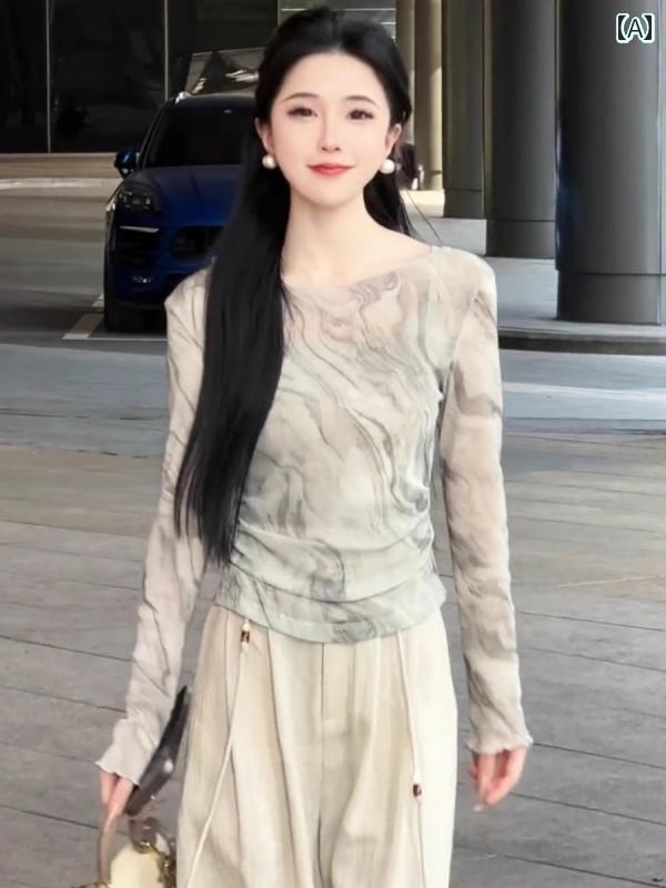 レディース トップス かわいい フレンチ レトロ タイ ダイ 長袖 Tシャツ レディース 2025夏 日焼け防止 スリミングな ボトムトップ