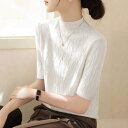 サマーニット レディース ダイナミック ゲディ 夏 スモール フライング スリーブ 冷感 半袖 ニット セーター レディース スリム マルベリー Tシャツ