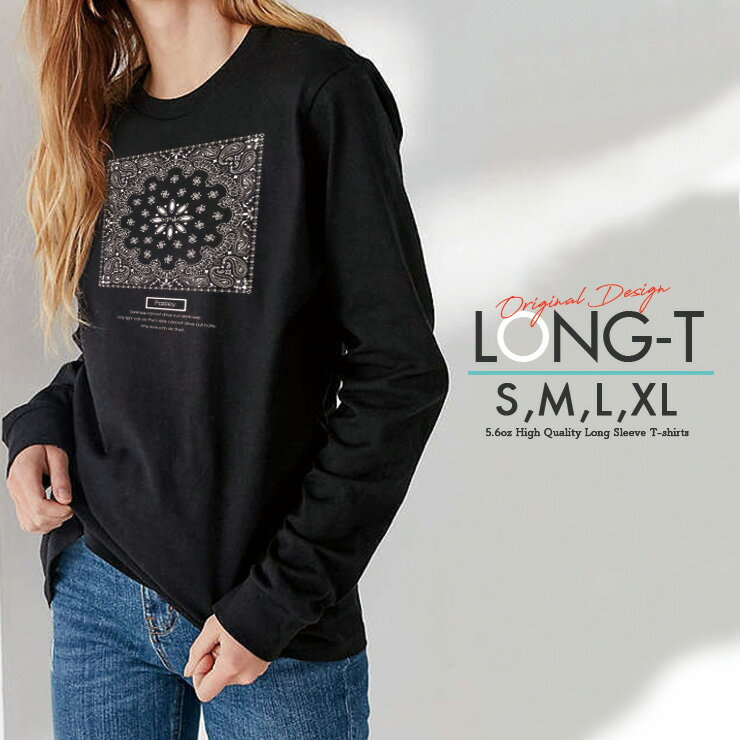 Tシャツ ロンT クルーネック 丸首 綿 長袖 カットソー メンズ レディース FU*K バンダナ柄 ペイズリー paisley かっこいい おとなかわいい 男女ペアでも使えるコーデ幅の増えるシンプルロンTです!!