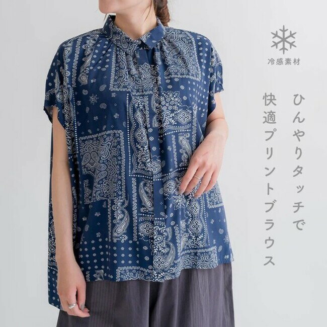 ブラウス レディース 涼しい トップス 春夏 羽織 ナチュラル 半袖 旅行 カジュアル エアコン対策 快適 接触冷感 バンダナ柄プリント 夏服 軽量 フリーサイズ エレガント モダン プレゼント ギフト