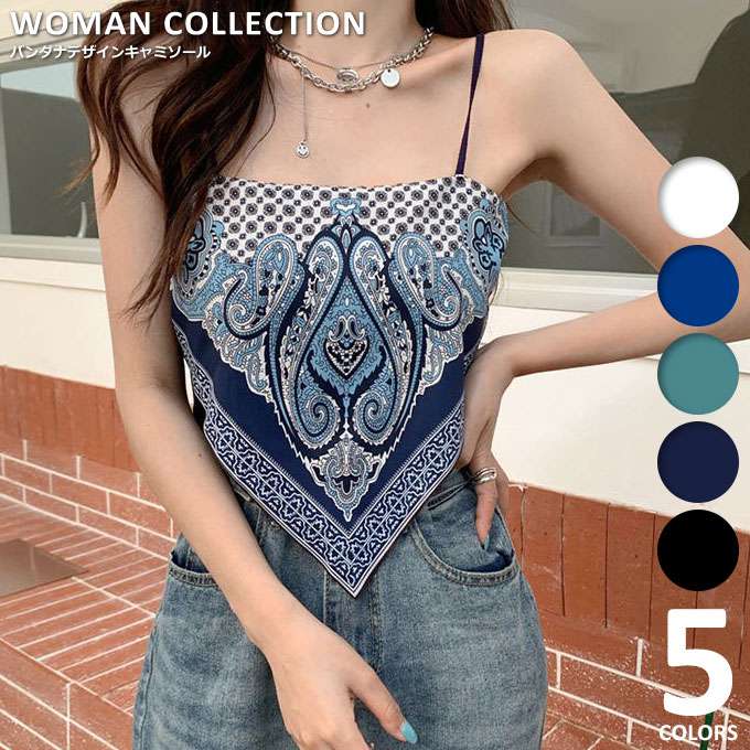 \15%OFF!クーポン/ キャミ ビスチェ キャミソール ベアトップ おしゃれ バンダナ かわいい 【メール便送料無料】 韓国ファッション ホワイト ブルー グリーン ネイビー ブラック フリーサイズ