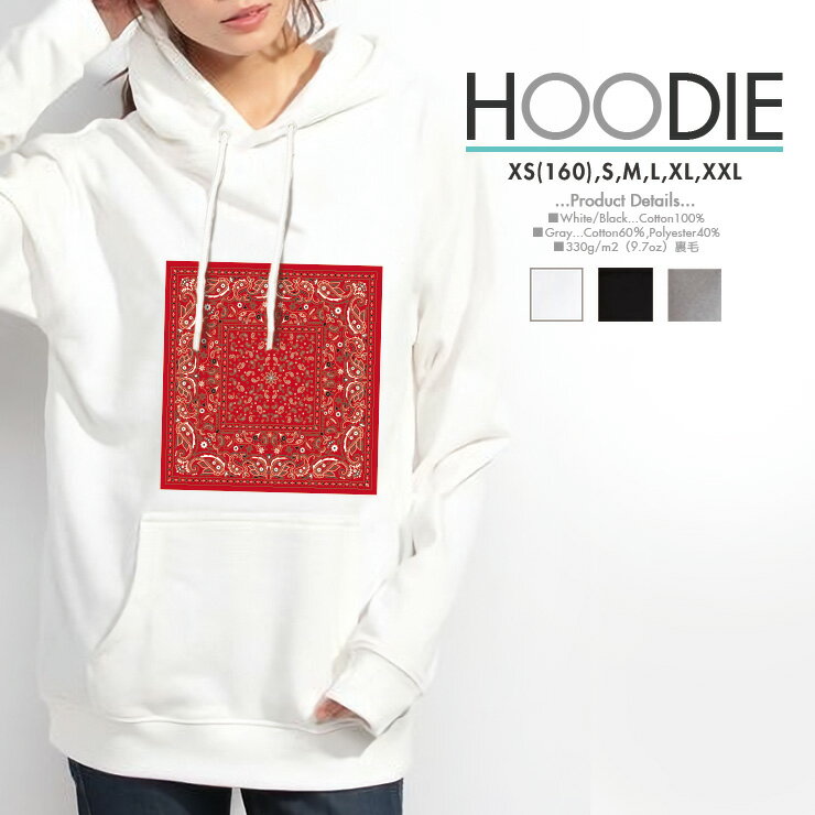 パーカー レディース メンズ スウェット パーカー プルオーバー hoodie 長袖 フード付き ペア カップル XS S M L XL バンダナ ペイズリー ハンカチ おしゃれ かっこいい