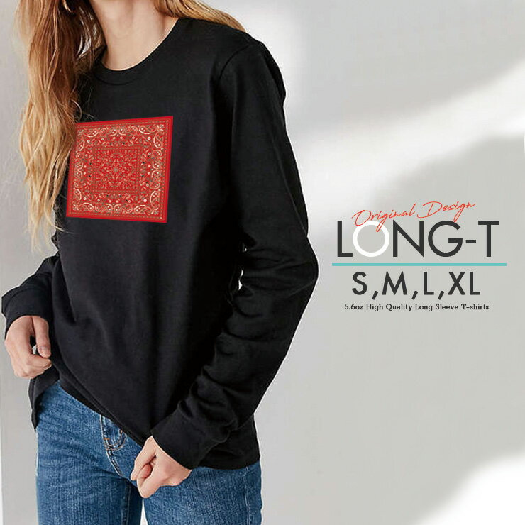 Tシャツ ロンT クルーネック 丸首 綿 長袖 カットソー メンズ レディース バンダナ柄 バンダナ ペイズリー paisely red 赤 男女ペアでも使えるコーデ幅の増えるシンプルロンTです!!