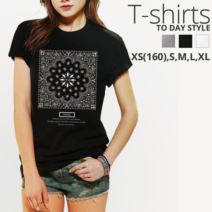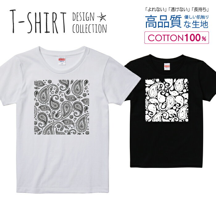 30%割引クーポン★ブラックフライデー★ Tシャツ レディース ガールズ ペイズリー シンプル ペーズリー バンダナ柄 おしゃれ サイズ M L 半袖 綿 100% コットン 人気 レディースサイズ 女性 白Tシャツ 黒Tシャツ ホワイト ブラック よれない 透