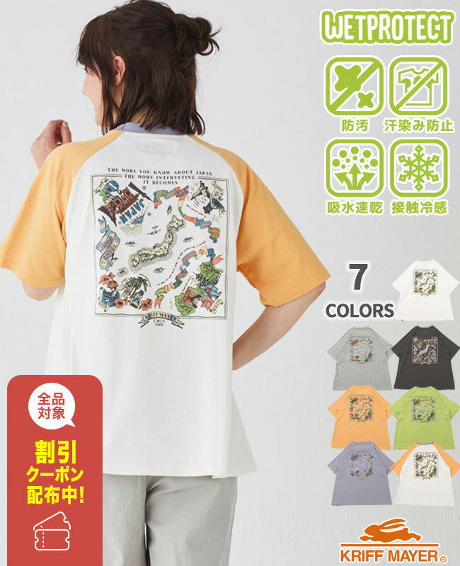 【ブランド直営】 ウェットプロテクト ゆるT JAPAN レディース 半袖Tシャツ 汗染み防止 夏 バンダナ柄 接触冷感 カジュアル ゆったり 速乾 涼しい アウトドア ラグラン KRIFF MAYER LADYS クリフメイヤーレディース【2025SS】 【ブラックフライデー 2025】