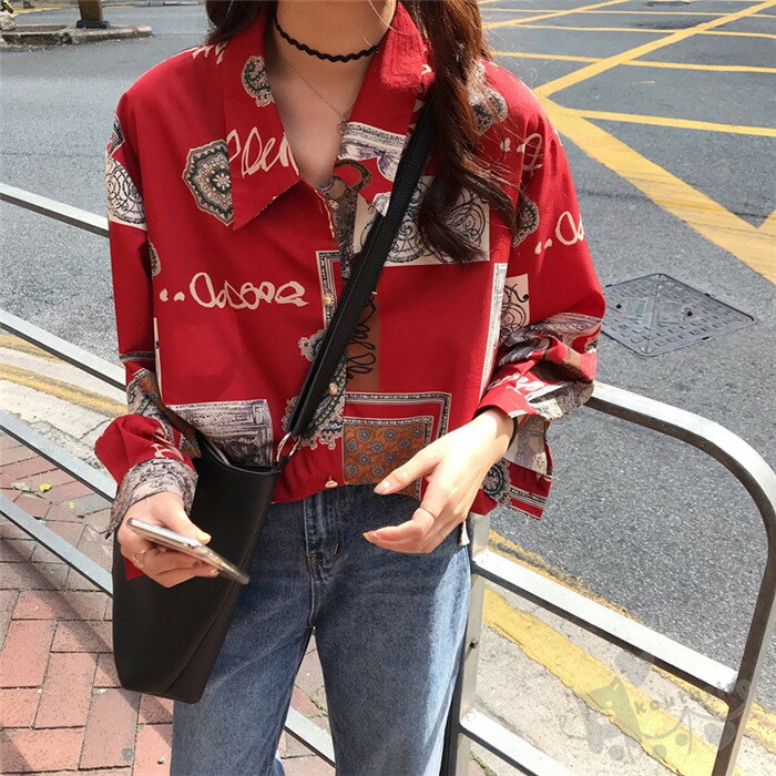シャツ ペイズリー柄 レッド 総柄 アート ビッグシルエット 長袖シャツ バンダナ柄 赤 ダンス 衣装 ヒップホップ コスチューム 韓国ファッション 大きいサイズ 個性的 服 原宿系 送料無料