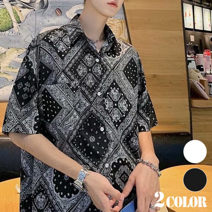 【10%OFFクーポン!11/27(木)1:59まで】Decorative 柄シャツ ペイズリー柄 半袖シャツ バンダナ柄 オーバーサイズ 白 黒 ダンス 衣装 ヒップホップ 韓国ファッション 大きいサイズ 個性的 夏 シャツ トップス トップス