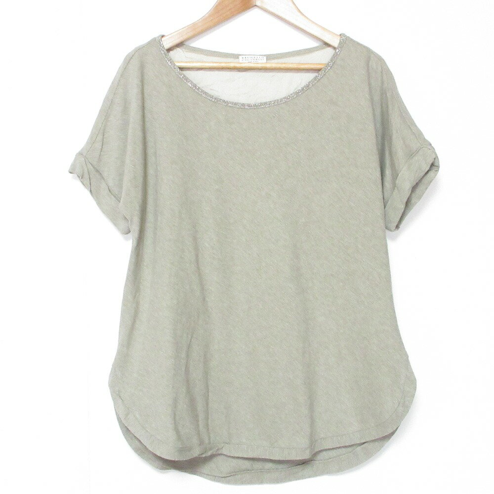 【中古】良品 BRUNELLO CUCINELLI ブルネロクチネリ モニーレ装飾 ストレッチ ラウンドヘム 半袖 カットソー M グレージュ レディース Luxs ブランド古着のリュクス