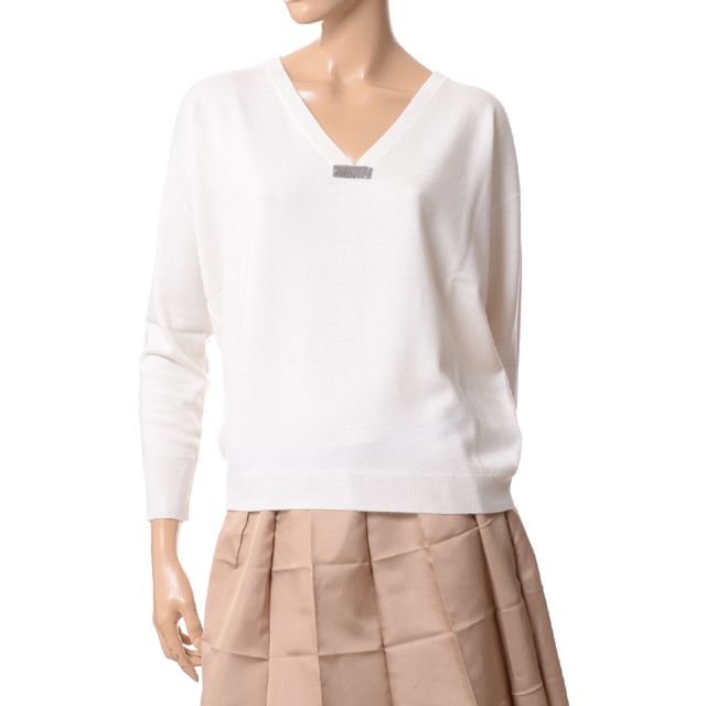 ブルネロクチネリ (Brunello Cucinelli) Vネック長袖セーター カシミアシルクニット ホワイトm73539902c159 2024AW レディース秋冬新作 送料無料 正規取扱