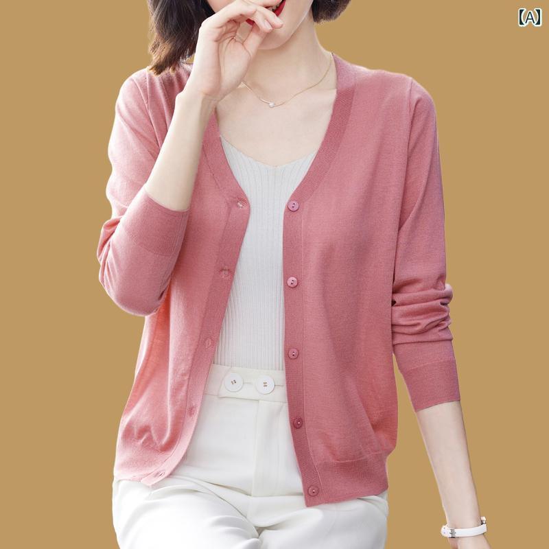 春秋 薄手 ウール カーディガン レディース Vネック ゆったり アウターウェア ニット エアコン シャツ トップス ショール