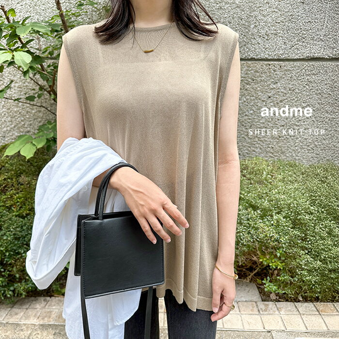 参考サイズ:【Mサイズ】着丈:(前身頃)63cm(後身頃)72.5cm肩幅:39cm身幅:52cm裾幅:78cm袖口:20.5cm素材:レーヨン89% ナイロン11%≪備考≫伸縮性:あり透け感:あり生地の厚さ:薄手肌ざわり:さらっとしているその他:ガーゼのような肌ざわり生産地:中国手洗い:可 ドライクリーニング:可 ウェットクリーニング:可モデル着用アイテム:モデル私物 ドライで涼しげなシアー素材が心地よい、ノースリーブニットトップスが新登場!前後差のある着丈や、ほんのりAラインのシルエットで体型カバーをしつつ、エアリーで涼しげな印象にみせてくれる1枚です。シンプルな中に、二の腕をほっそりみせる工夫を施した、デザインにもこだわりました。ガーゼのようなサラッとした肌ざわりで、透け感があるため、インナーにブラトップやキャミソールを合わせてご着用ください♪※撮影時のライティング、ご覧になっているモニター・PC環境により実際の商品と色味が異なって見える場合がございます。ご了承の上お買い求め下さい。 モデル着用アイテム:モデル私物 モデル着用アイテム:モデル私物 モデル着用アイテム:モデル私物 モデル着用アイテム: パンツ※在庫切れ・販売終了・近日発売予定の商品はリンク切れしていることがございます。 モデル着用アイテム:モデル私物 モデル着用アイテム: パンツ※在庫切れ・販売終了・近日発売予定の商品はリンク切れしていることがございます。 モデル着用アイテム: スカート※在庫切れ・販売終了・近日発売予定の商品はリンク切れしていることがございます。