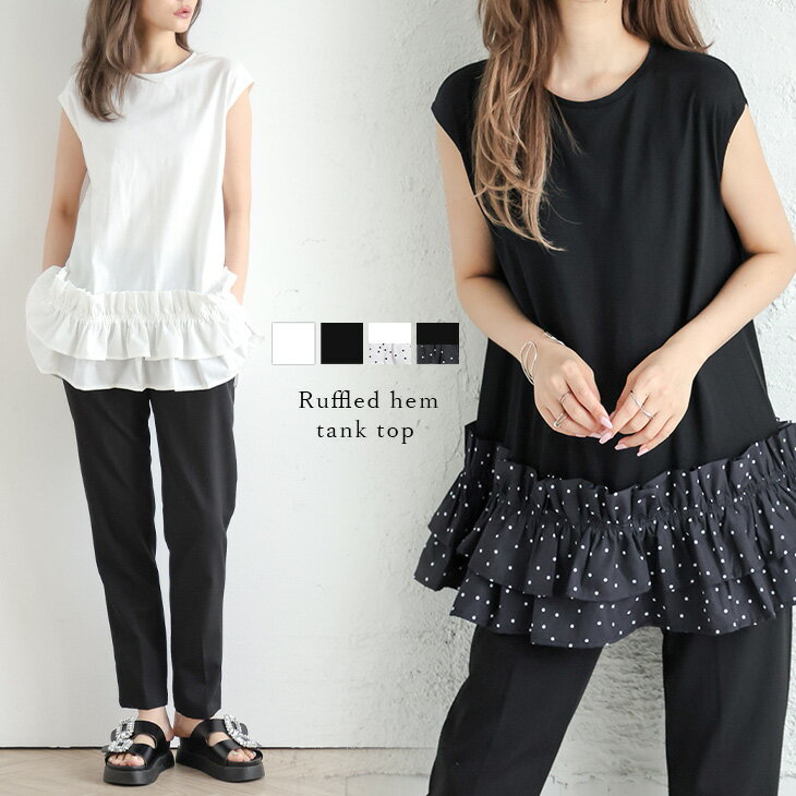 タンクトップ フリル 裾フリル フレンチスリーブ コットン混 トップス レディース 体型カバー 女性らしい 可愛い 柔らかい おすすめ フリーサイズ メール便 2024春夏【letp303-347】【即納:1-5営業日】【送料無料】ユ込3