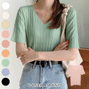 【1,344円!クーポン利用で】 サマーニット レディース 半袖 Vネック トップス ゆったり 二の腕カバー 半袖ニット パフスリーブ カットソー リブニット 袖長め 体型カバー きれいめ 大人 可愛い 上品 オフィスカジュアル 秋冬