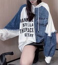 秋冬【即日発送】L.A.ROSE【free】ミニ裏毛×デニム クレイジー切替え ロゴプリント スウェットパーカー R11697 デイリーファッション 普段着 おしゃれ着(トップス単品)ミセスファッション 大人可愛い30代 40代 50代 若見え 洋服 婦人服 可愛い服 秋冬 男性